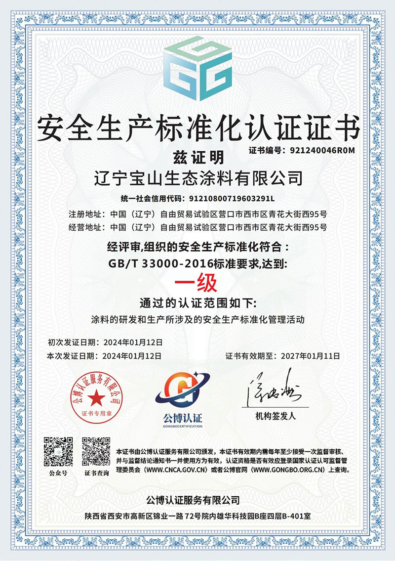 安全生产标准化认证证书